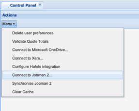 | 5. Log-in to your Jobman 1.0 software once you have received notification that your Jobman 2.0 migration has been turned on. Navigate to Admin>Control Panel>Menu. | ![]() |