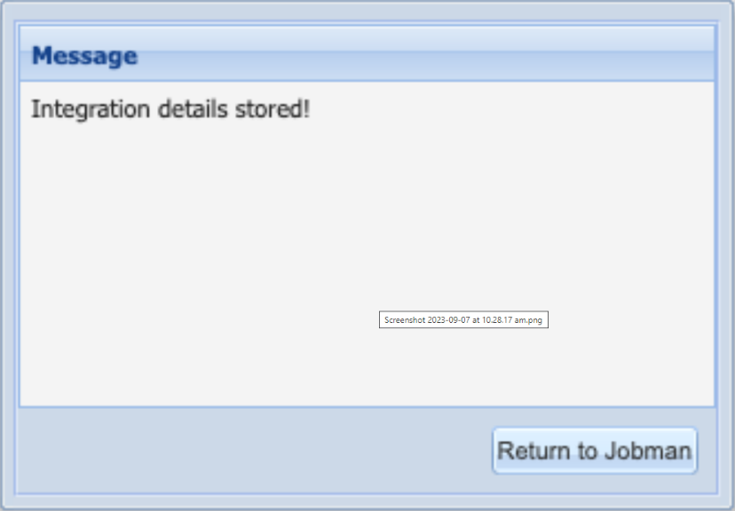 | 7. Return to Jobman 1.0 and you should see this message! | ![]() |